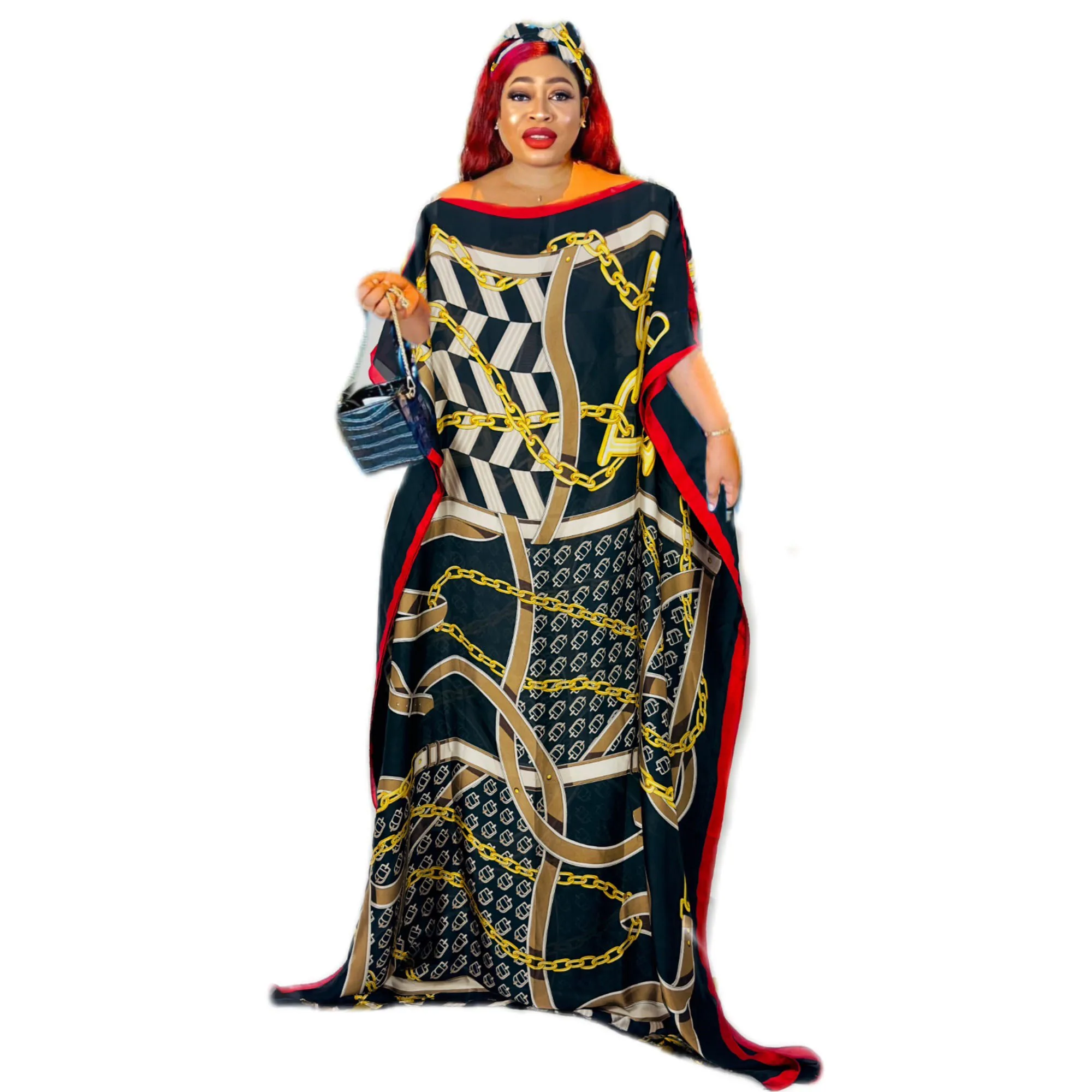 2023 New Style Fashion Oversize African Women Clothing Dubai Dashiki Abaya Free Size Print Design With Scarf Loose Long Dress