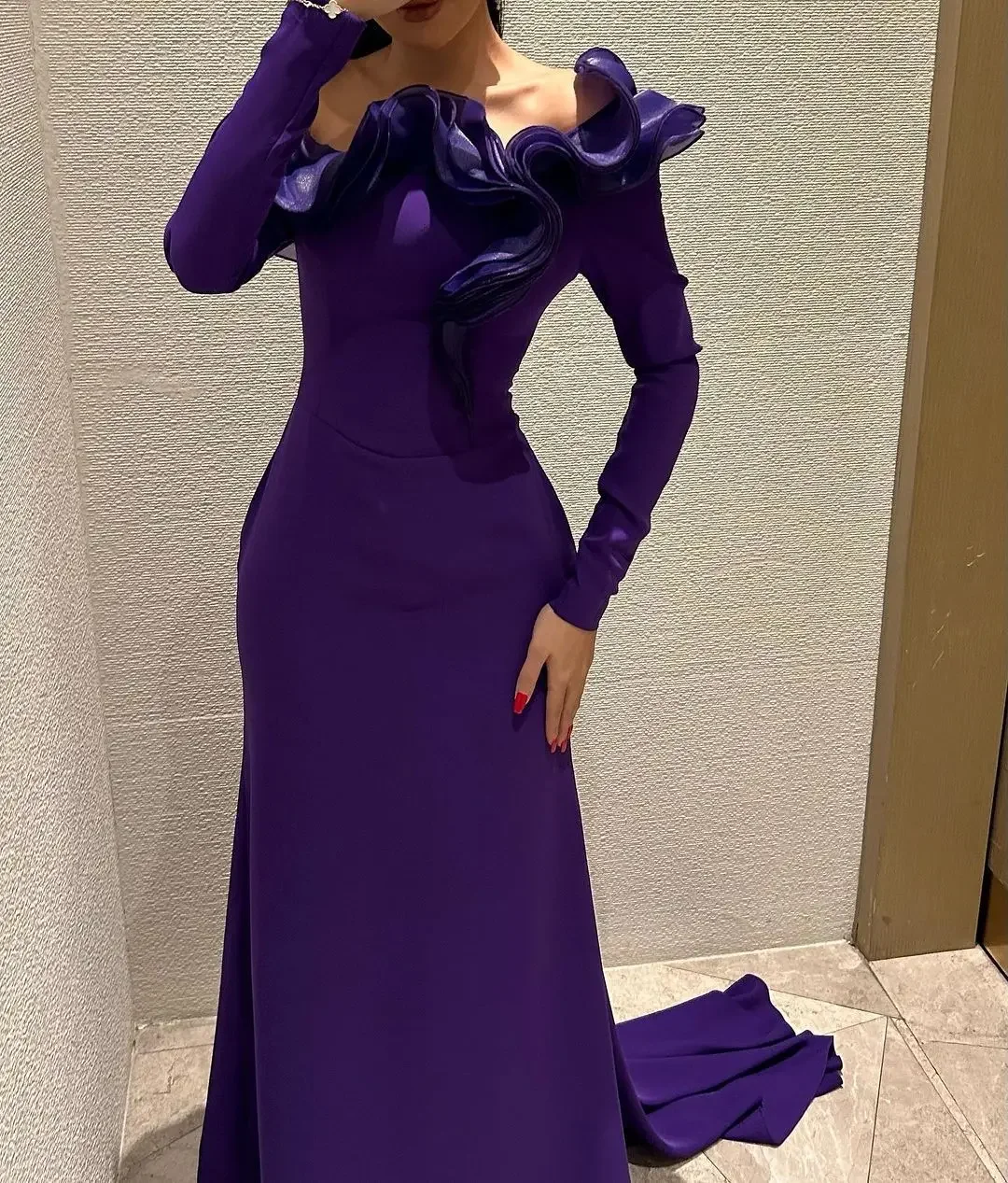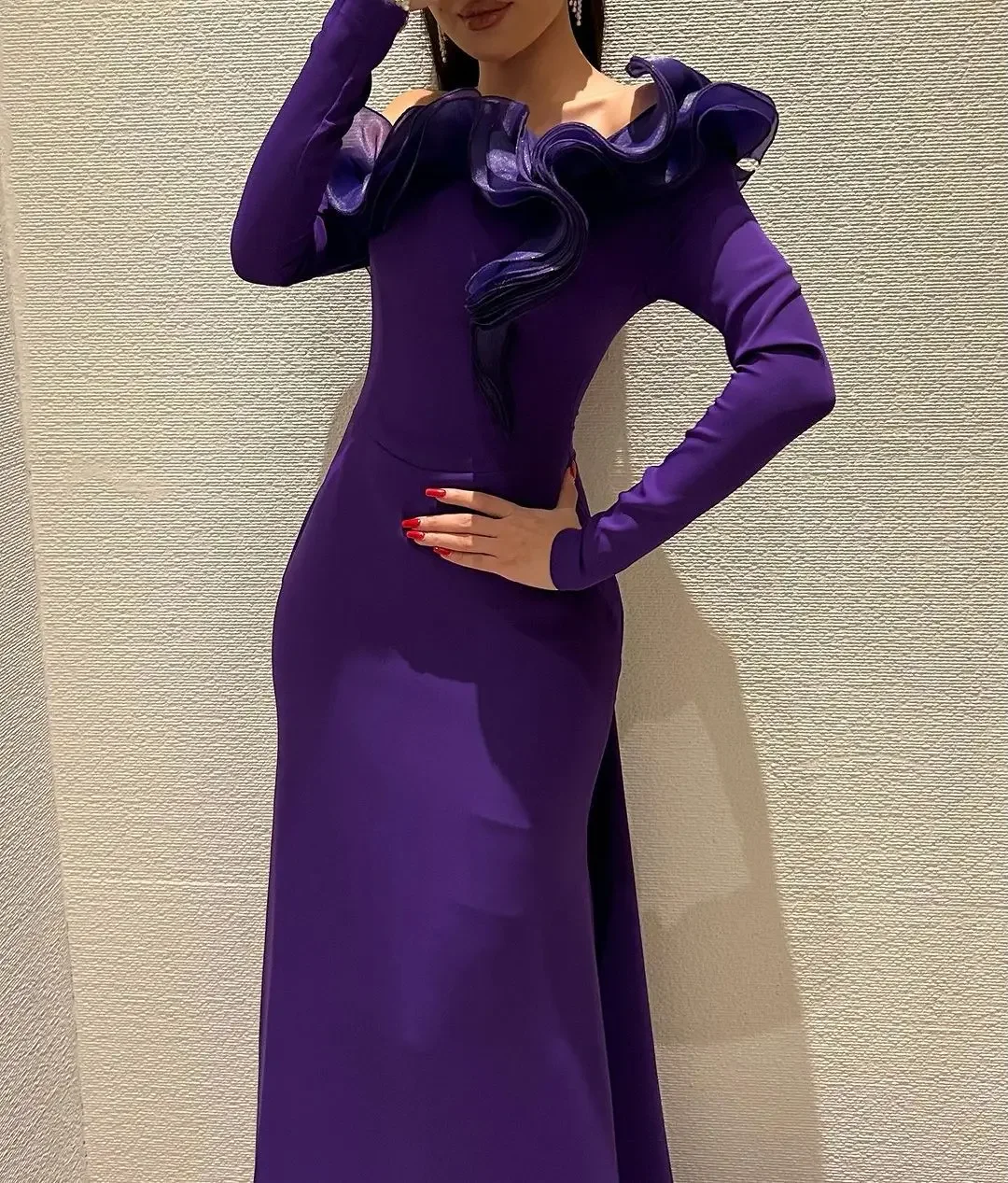 2024 Autumn/Winter New Women’s Evening Dress Sexy Tail Wagon Flower Edge Ballevening Dress Cross-Border E-commerce