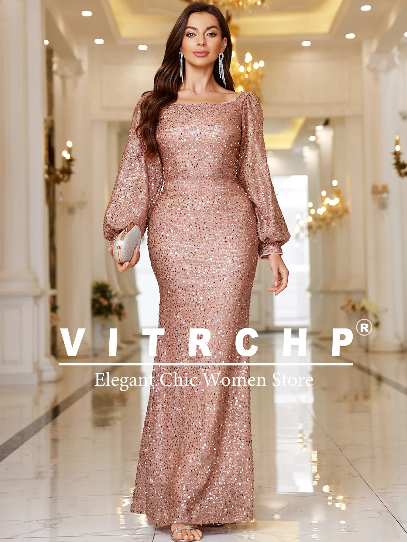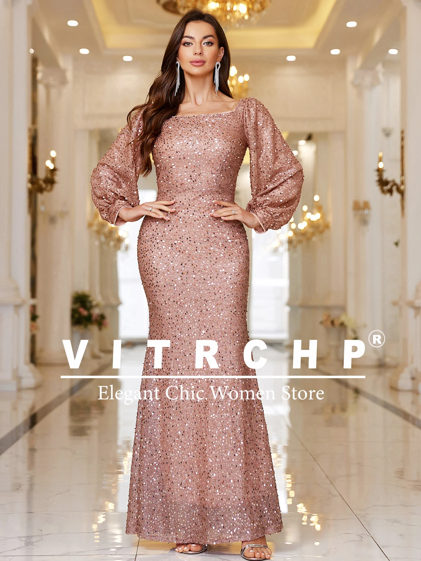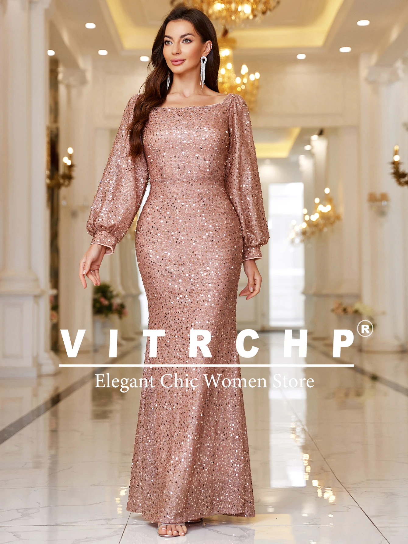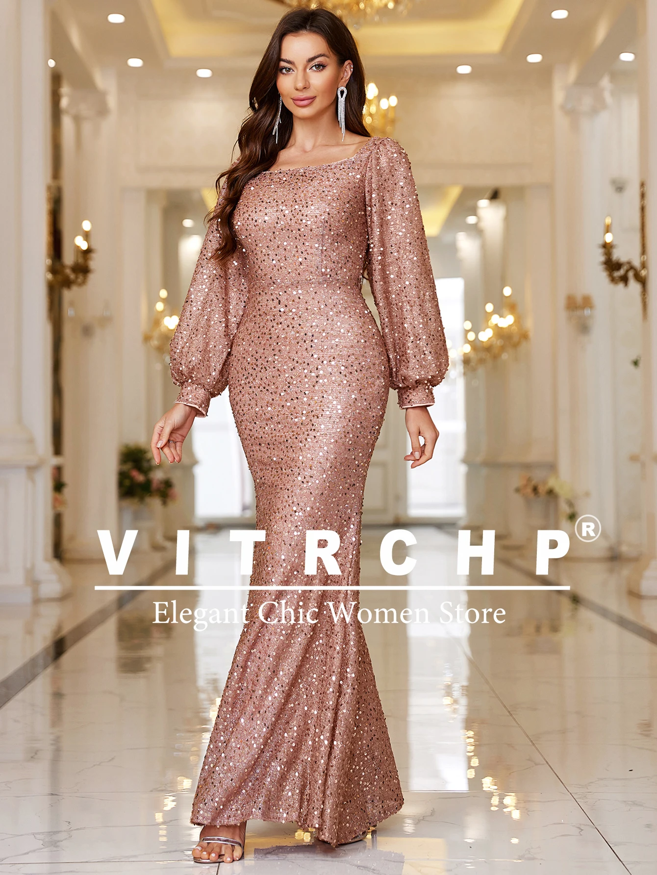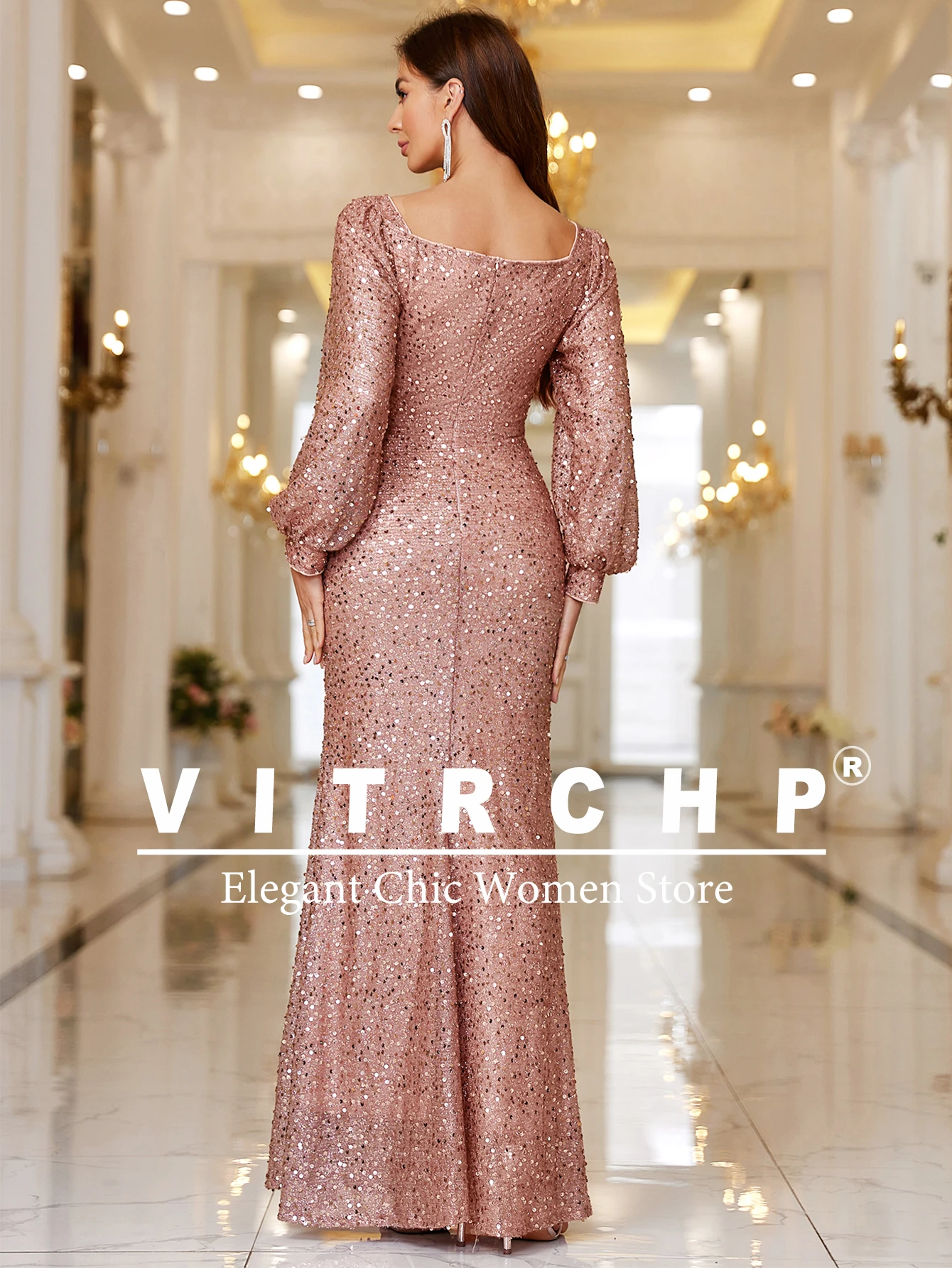2025 Elegant Sequin Evening Dresses Women Sweetheart Neck Flare Sleeves Bodycon Mermaid Wedding Party Prom Dress Gown New Year