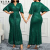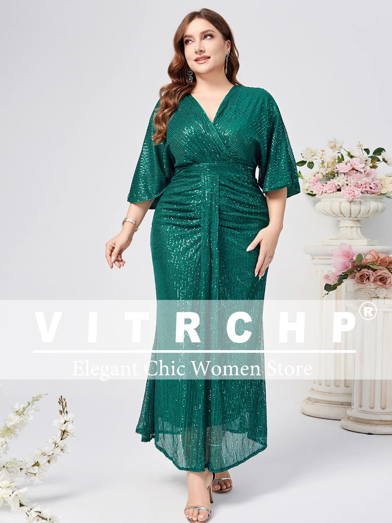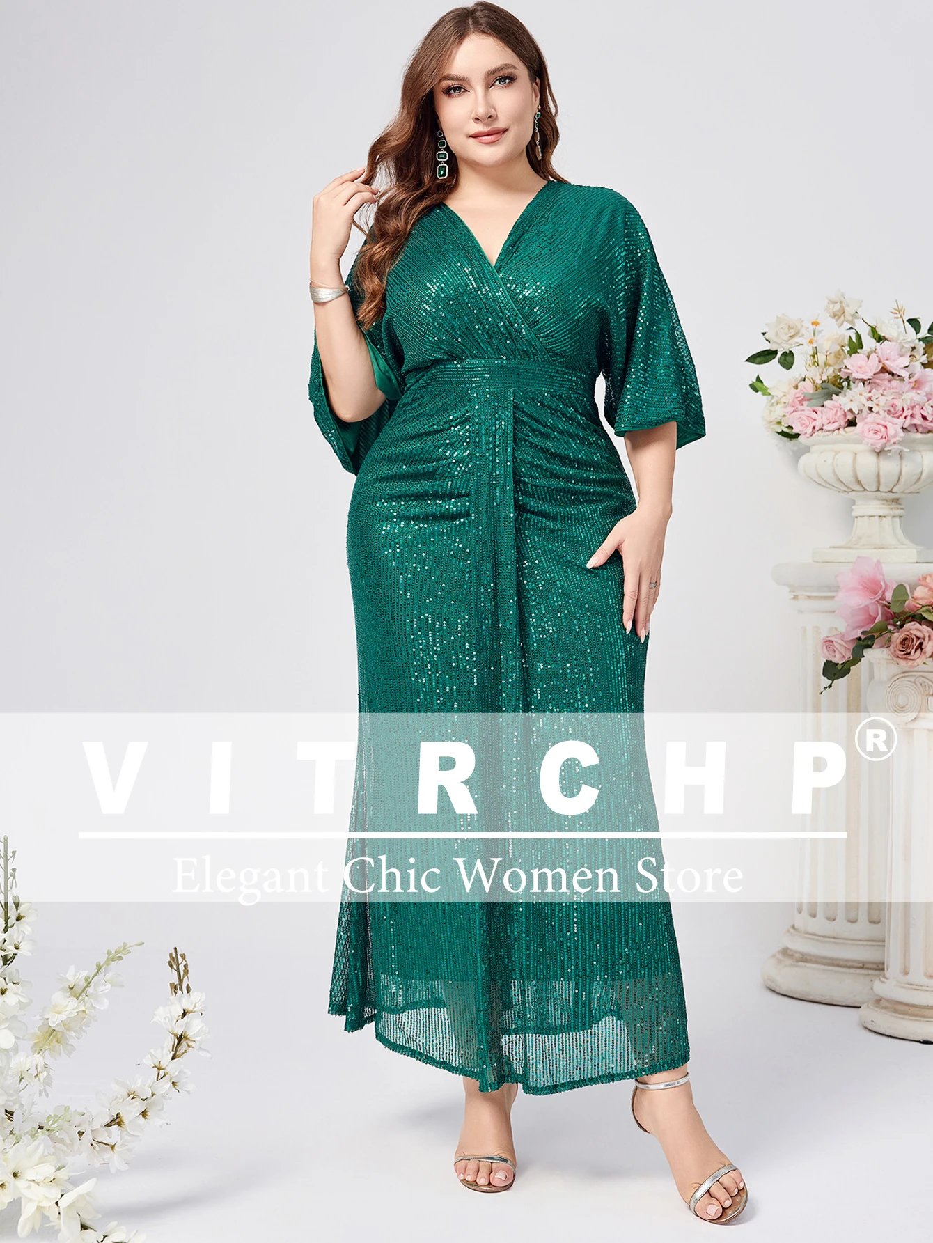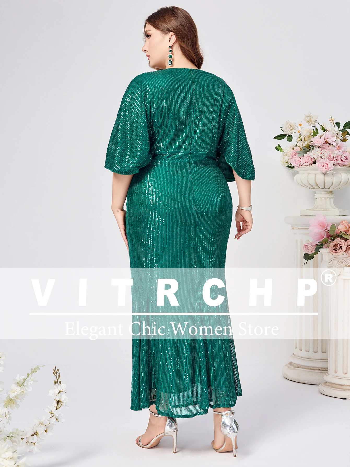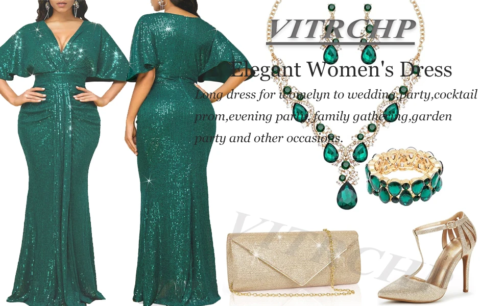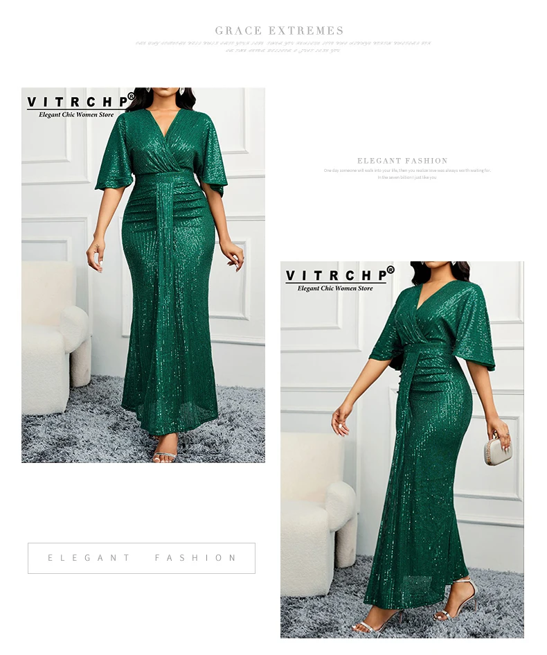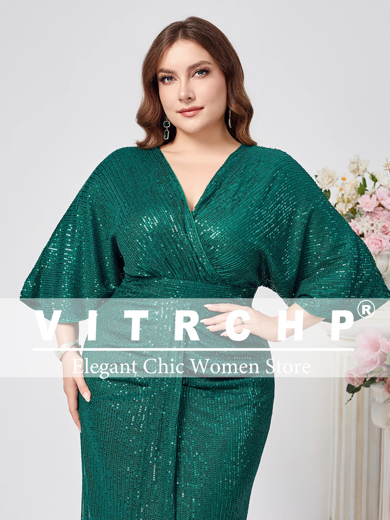 2025 Women High Waistedey Sexy V-neck Sequin Dress Fashion Raglan Sleeves Slim Long Skirt Banquet Cocktail Party Formal Dresses