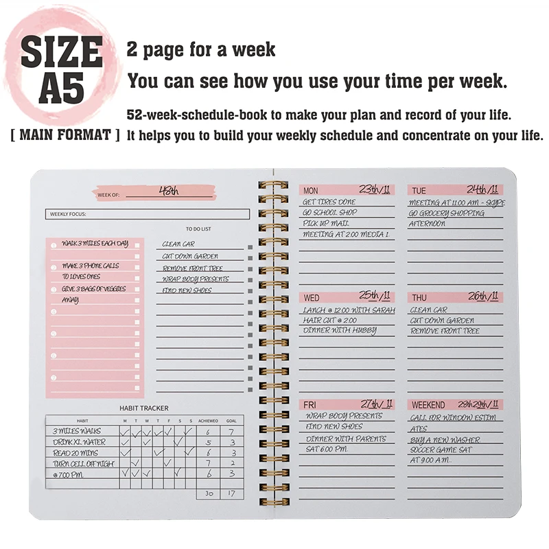 52周的日程安排书来制定你的计划和记录你的生活。