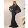 Batwing Sleeve Long Sequined Maxi Evening Dress Patchwork Chiffon Elegant Stretch Party Prom Night Gown for Women