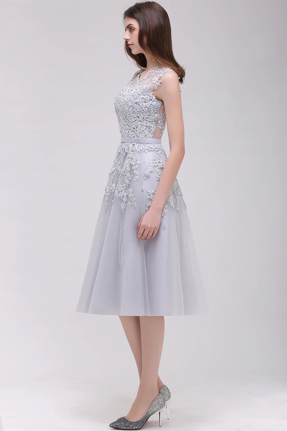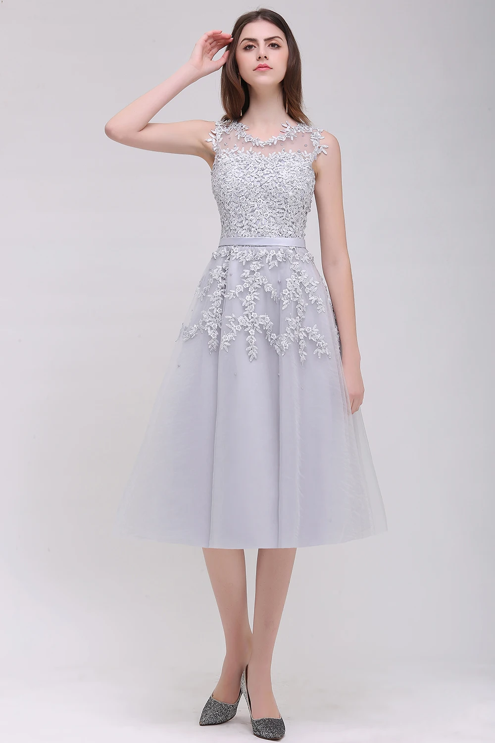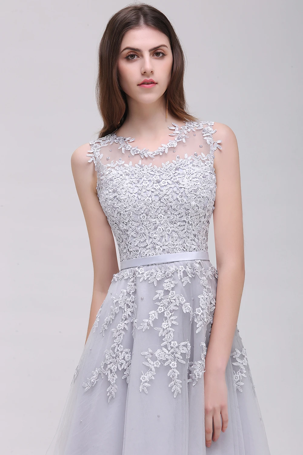 Burgundy Soft Tulle Wedding Dress Ankle-length Applique Scoop Neckline Sleeveless Prom Dresses Zipper Up Wedding Party Dress