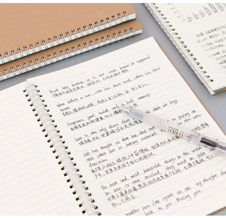 2. Material: Kraft paper cover, metal spiral binder, 80 GSM paper.