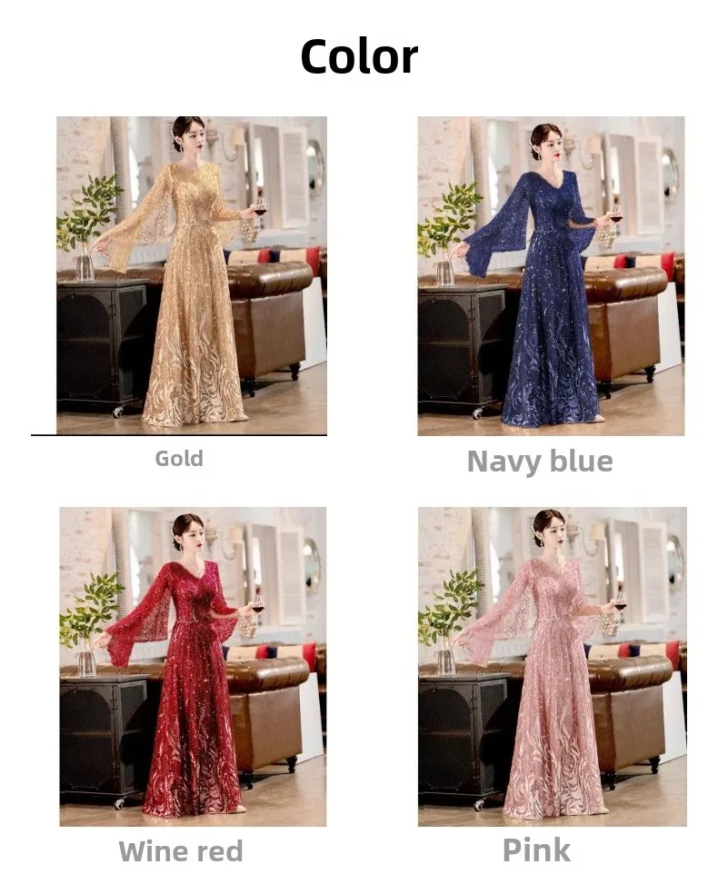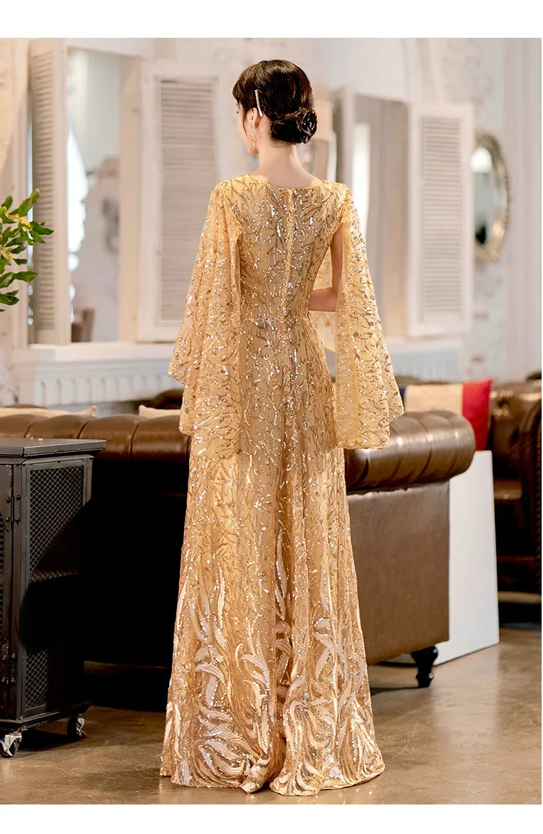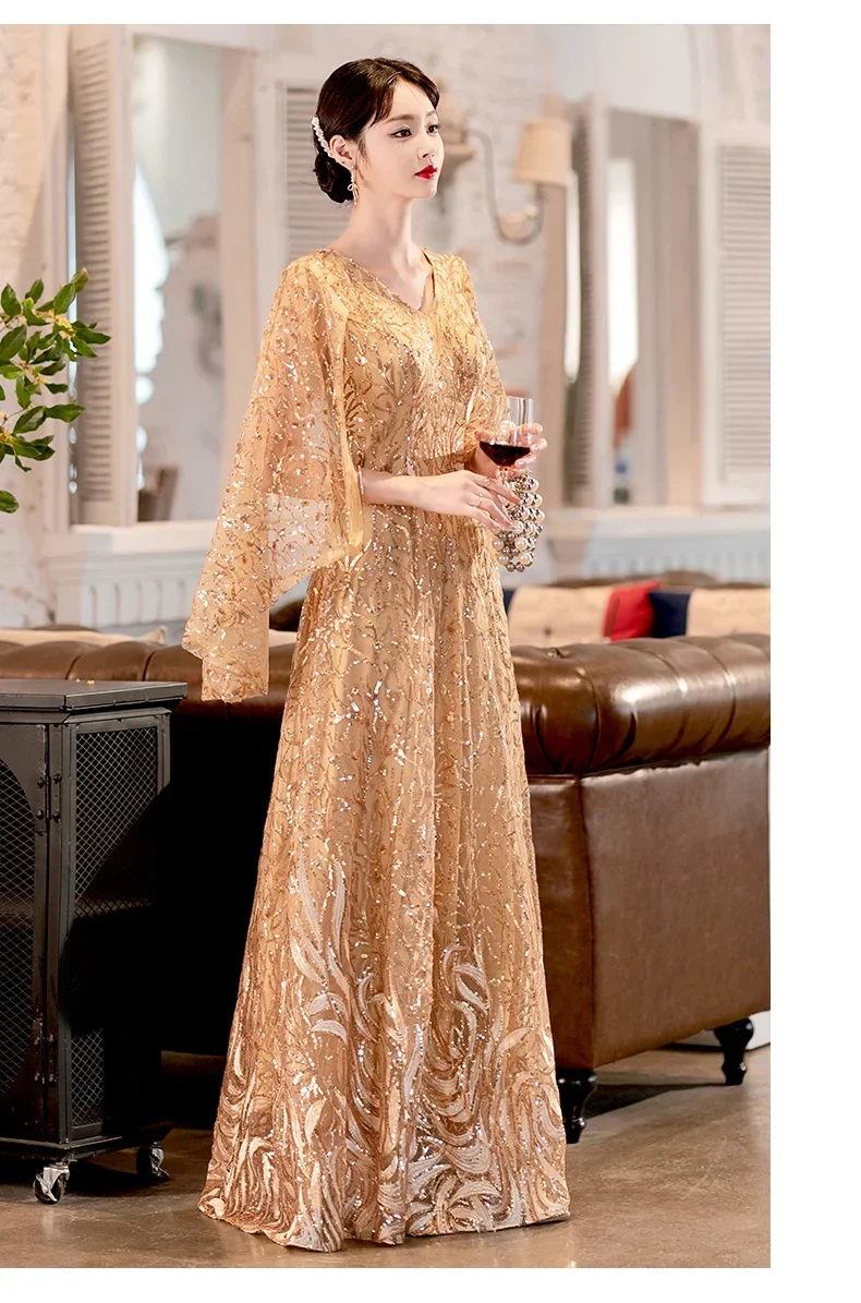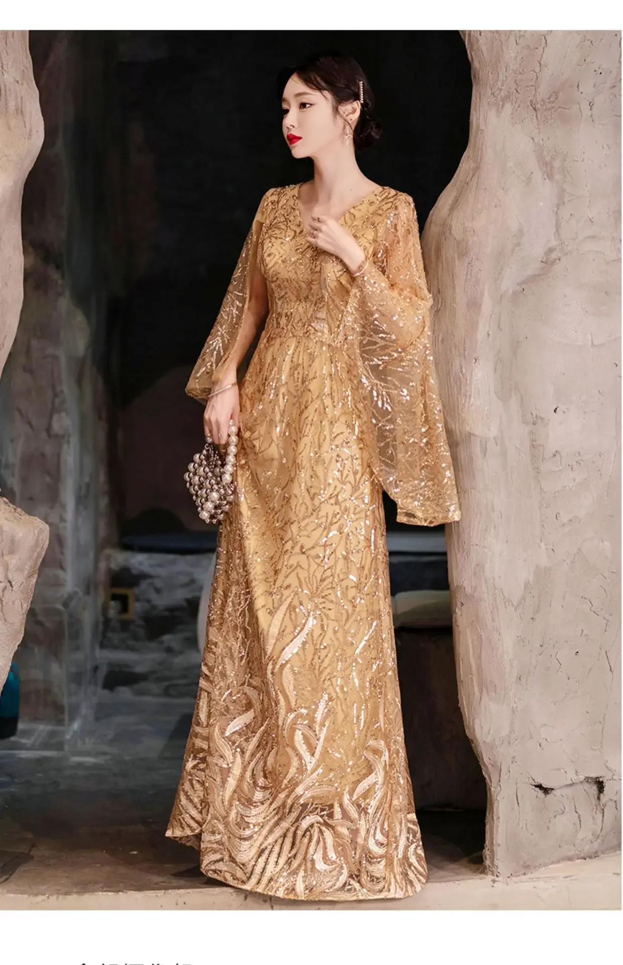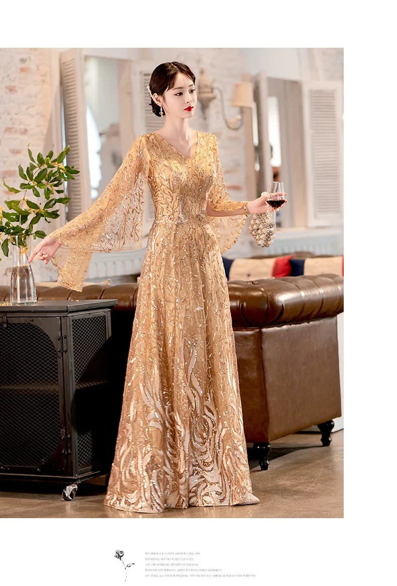 Elegant High-End Feel Gold Evening Dress For Women Light Luxury Hostess Dress Art Exam Commander Performance Outfit Sequins Long