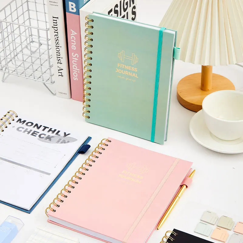 Fitnes Journal for Women & Men Workout Log Book to Track Exercise Progress Spiral Design Schedule Notebook