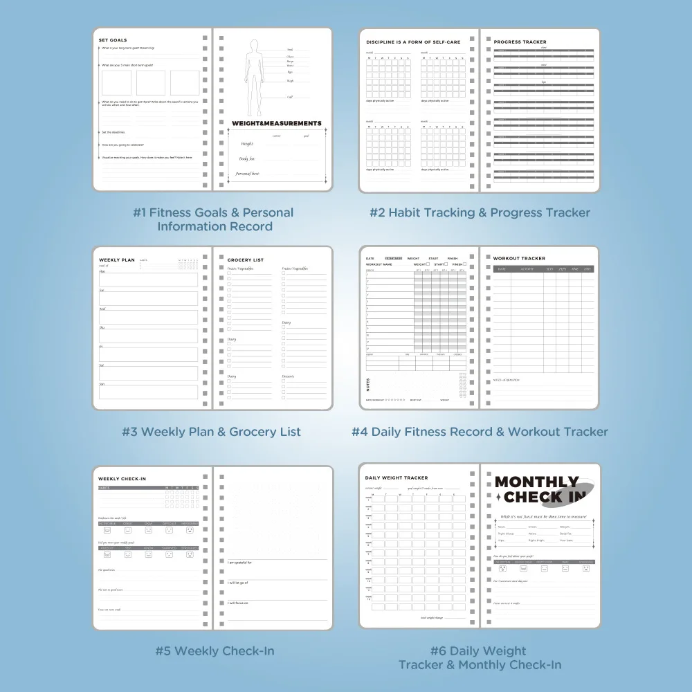 Track Your Workouts – Stay organized and record your gym workouts with this comprehensive fitness planner. It provides dedicated sections to log exercises, sets, reps, and weights, allowing you to monitor your progress over time.