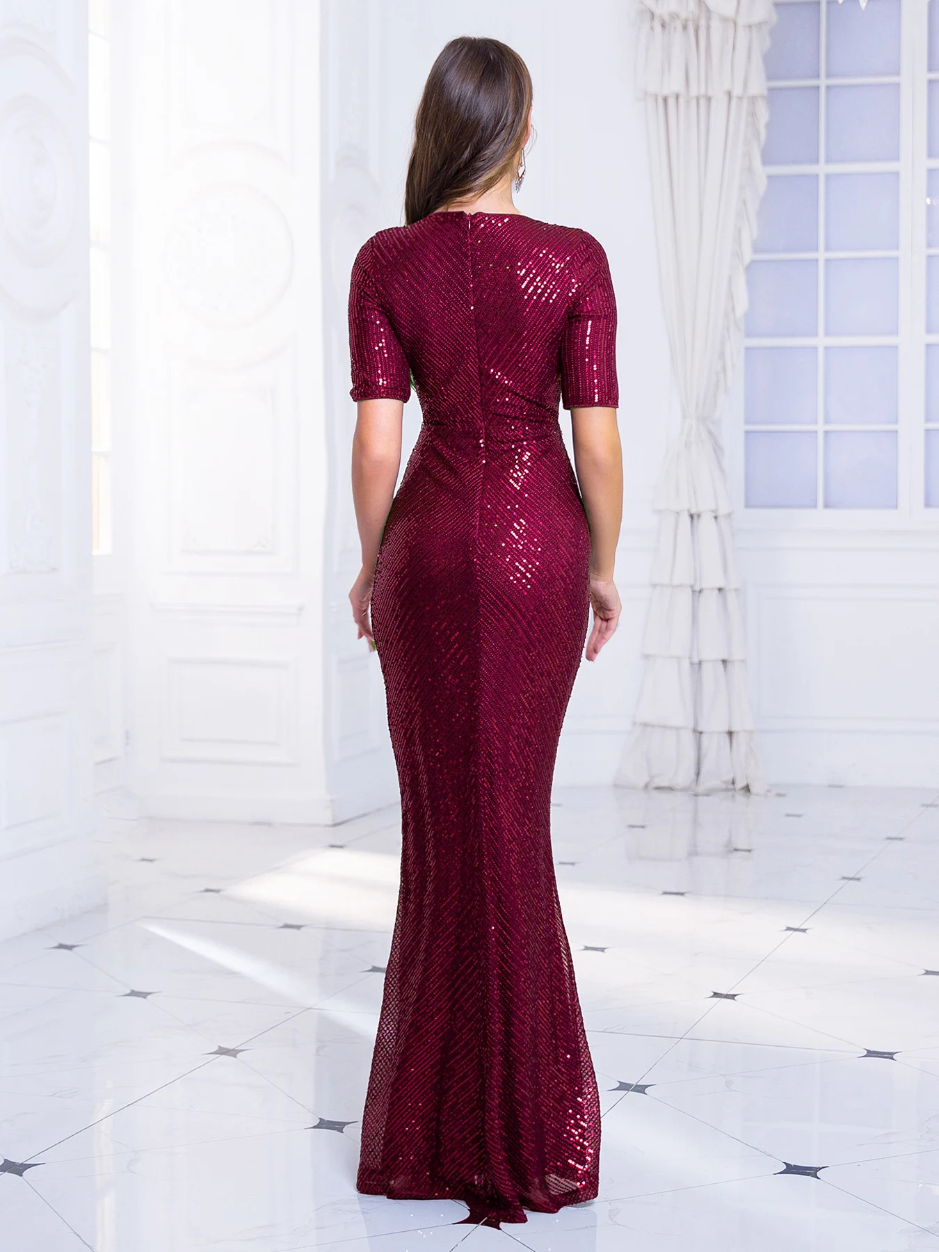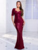 Half Sleeve Sweetheart Neck Sequined Maxi Dress Evening Prom Gown Cocktail Stretchy