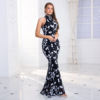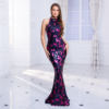 High Neck Floral Sequined Long Party Evening Dress Stretch Elegant Sleeveless Slim Prom Maxi Gown