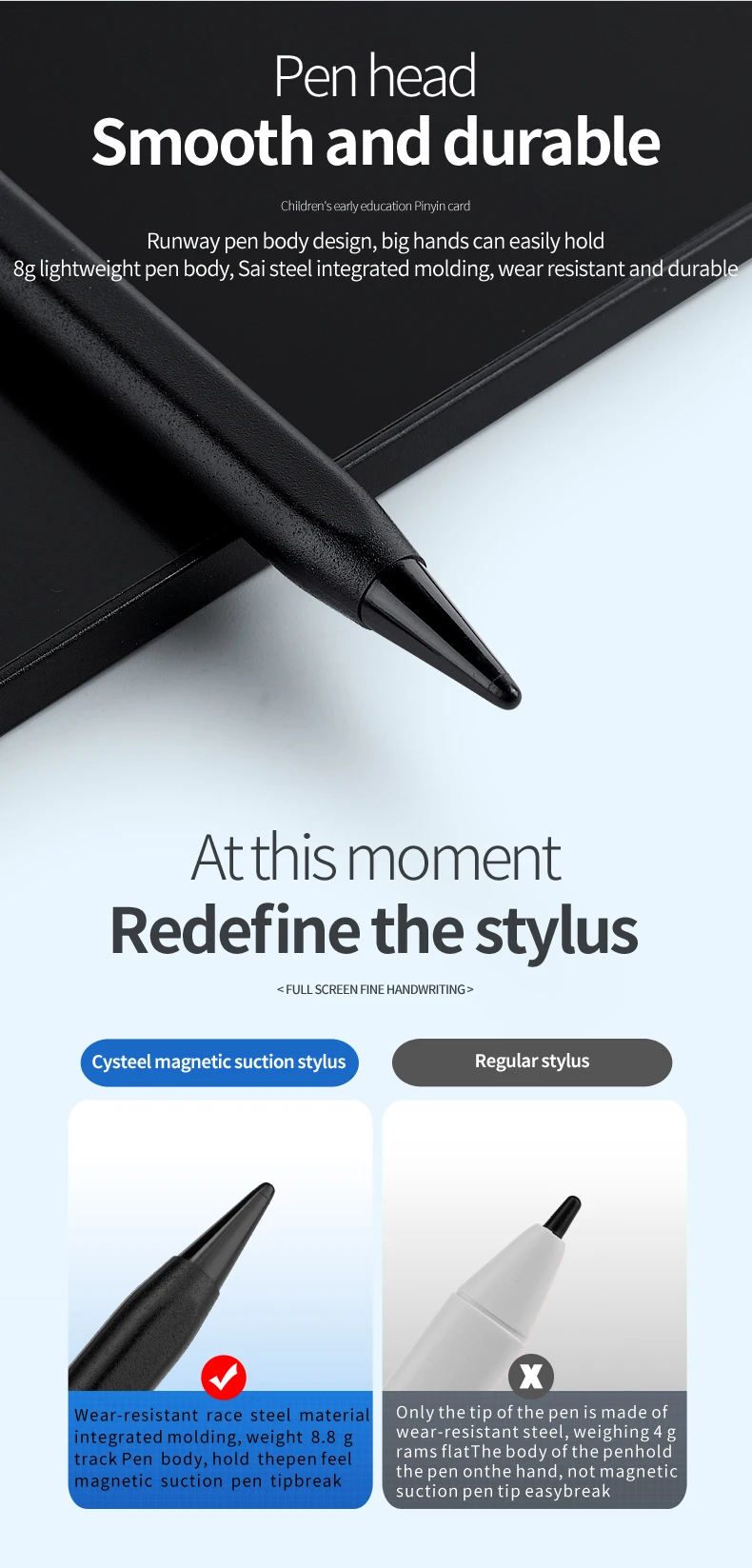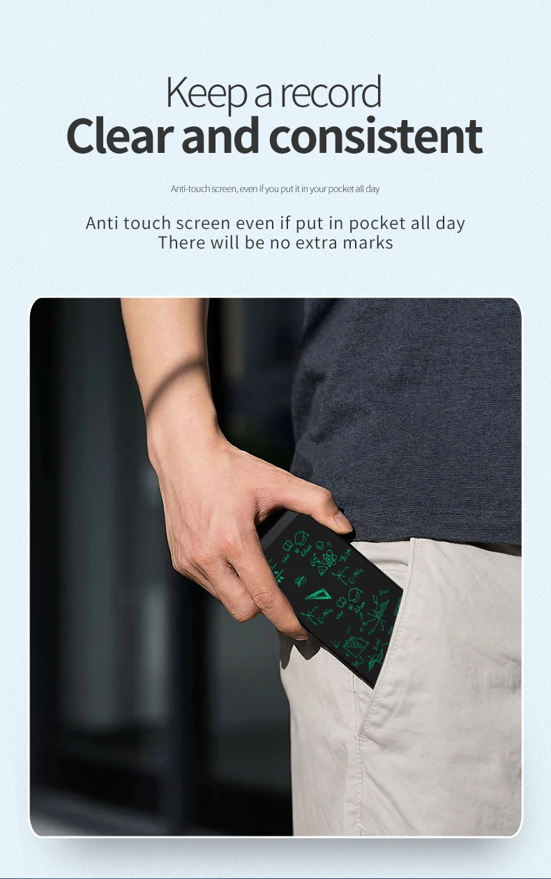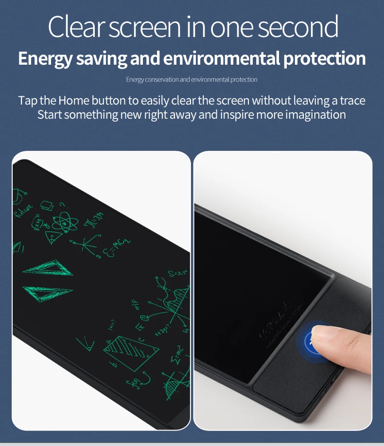 Built in a screen lock key to avoid accidentally erased while you writing. Don’t worry about losing the important image or data. One button erase the contents easily and quickly by the erase button.