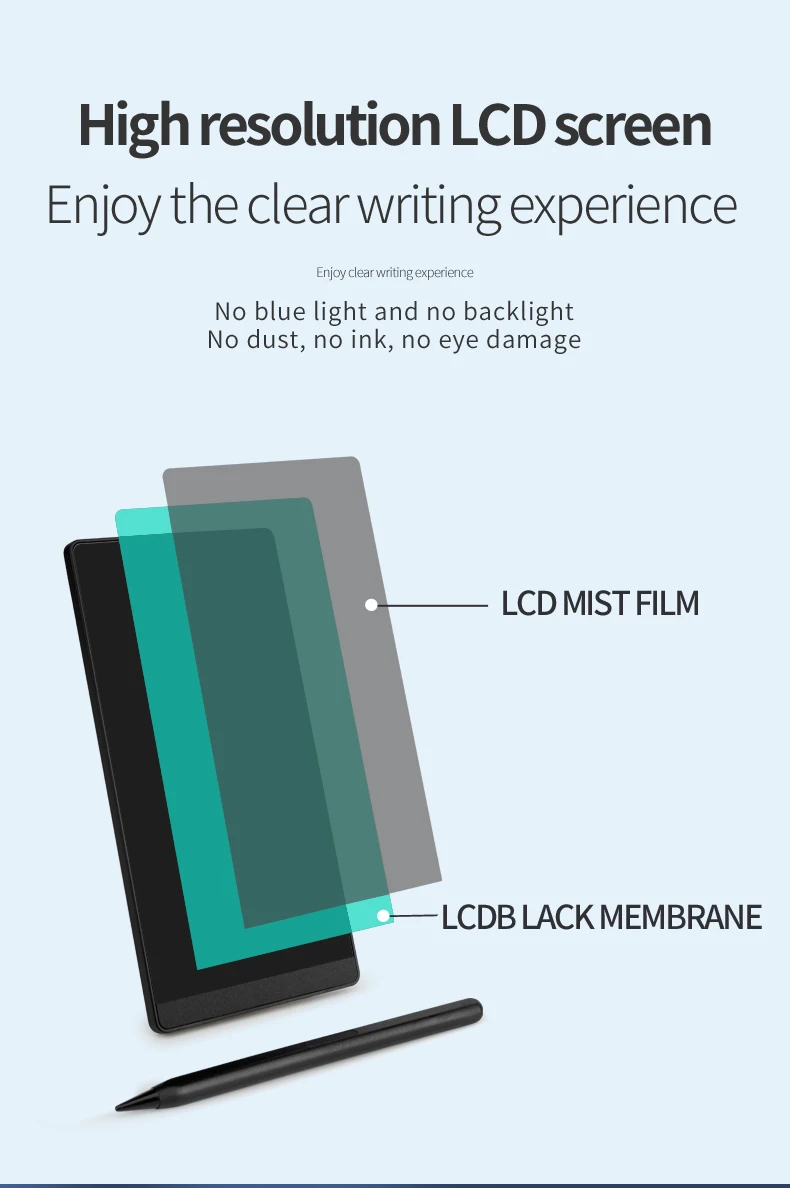 High quality LCD screen enables the lines be smoother and clearer. No dust, no radiation, no glare, protects your eyes. the Graphic tablet is perfect for children graffiti designer, business man,teacher,students and artist,The best tool for deaf-mute people to communicate ,educators to help students learn math and practice. and the LCD writing tablet is applicable for multiple occasions such as group discussion, brainstorming,taking notes, making calculations, reminder,memo, record the moment of inspiration and so on. besides it is suitable for all the ages.