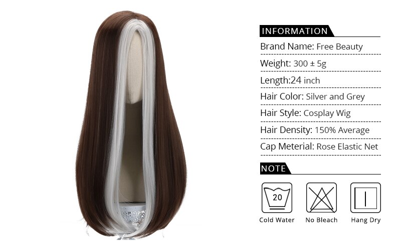 Free Beauty Long Straight Synthetic Silver Brown 24