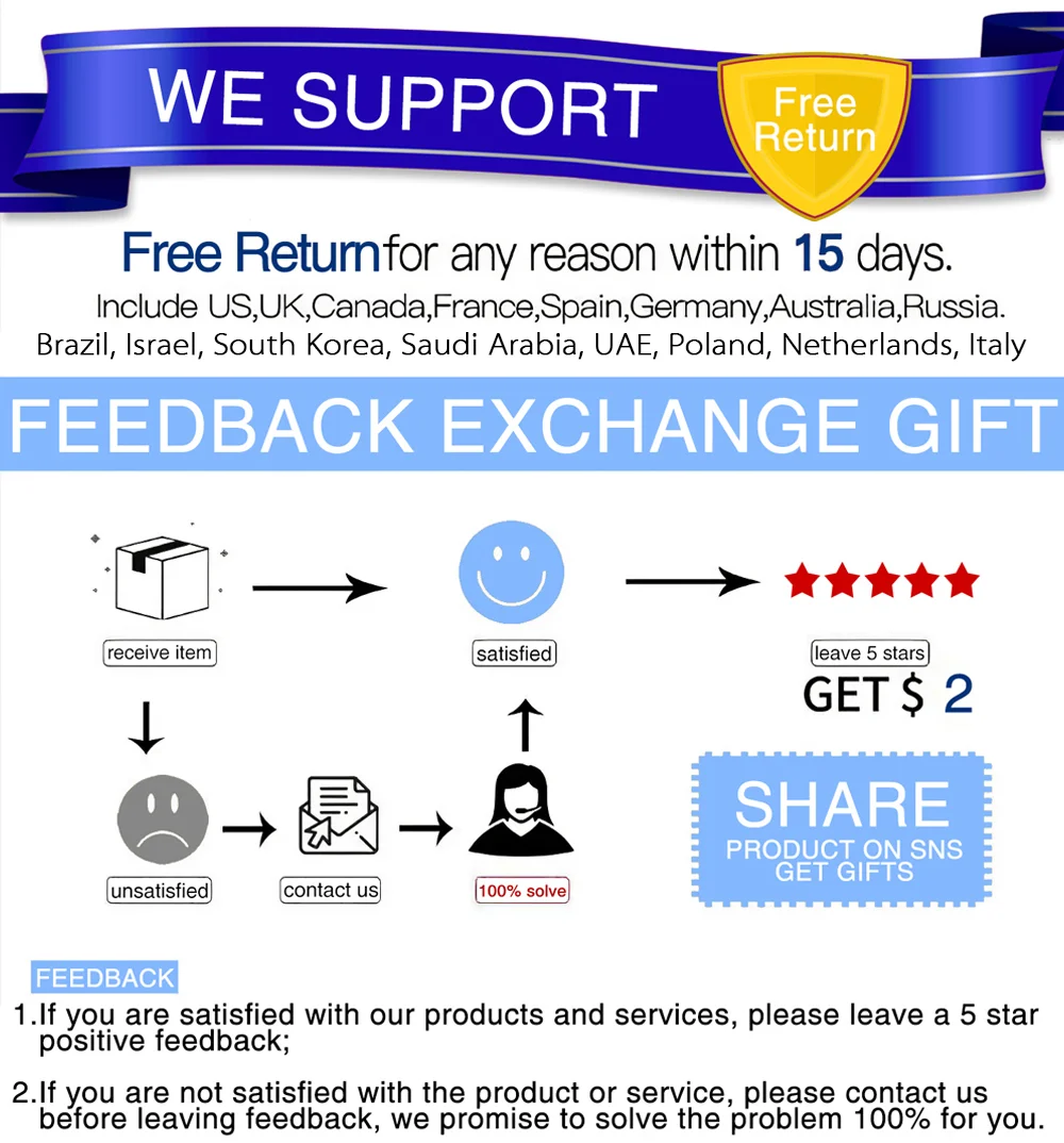 Your satisfaction is our #1 priority. Therefore, you can request a refund or reshipment for ordered products if: