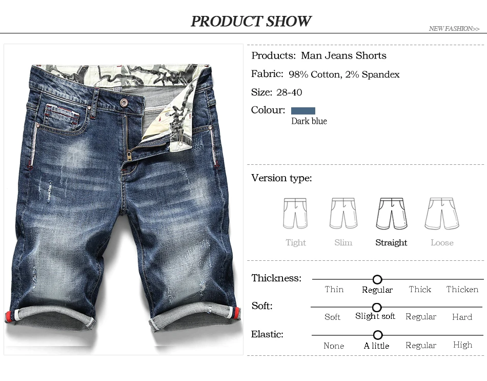 Men’s Stretch Jeans Casual Slim Fit Elastic Denim Shorts