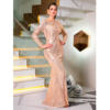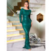 O Neck Elegant Modest Full Sleeved Sequined Evening Dresses for Women Prom Formal Gown