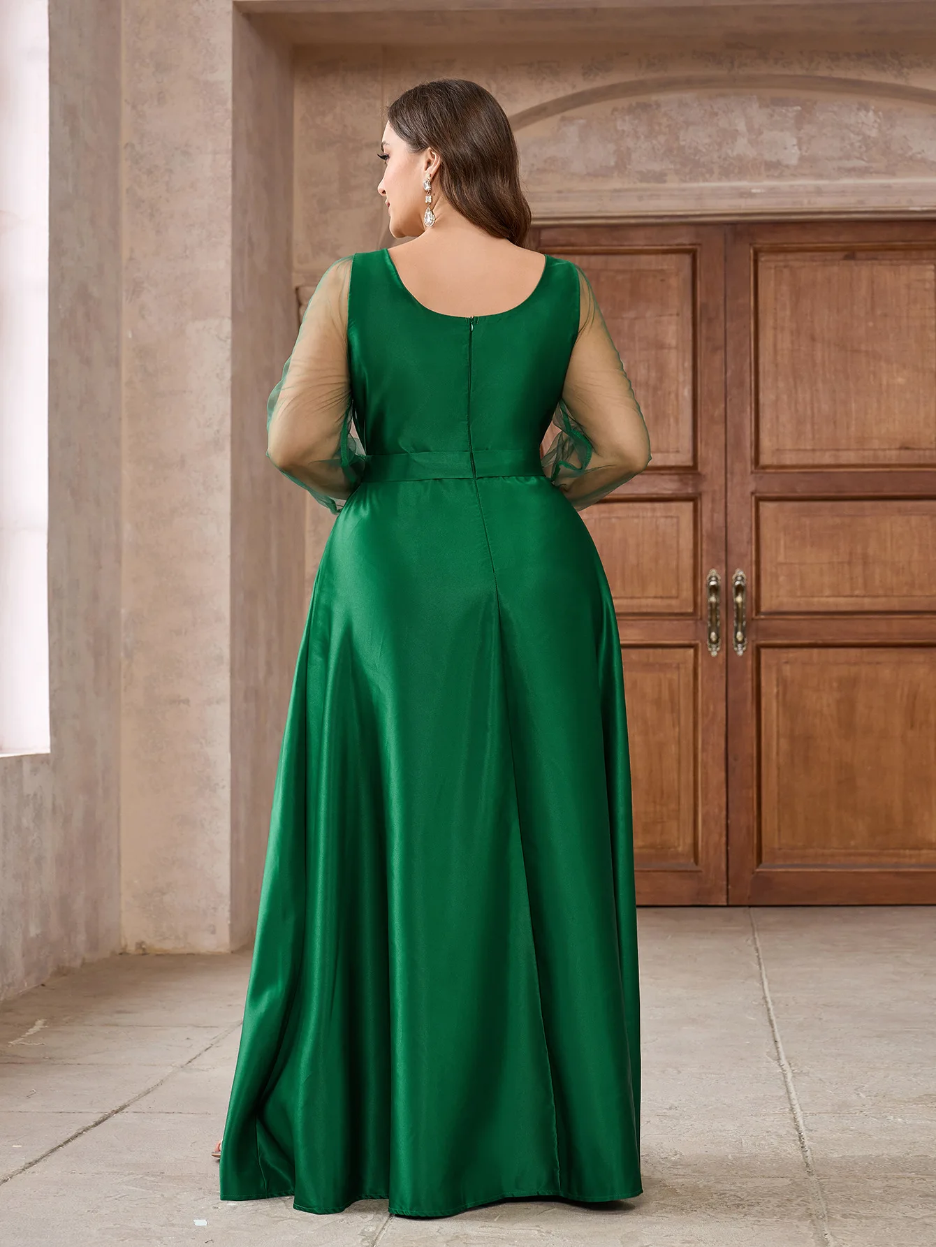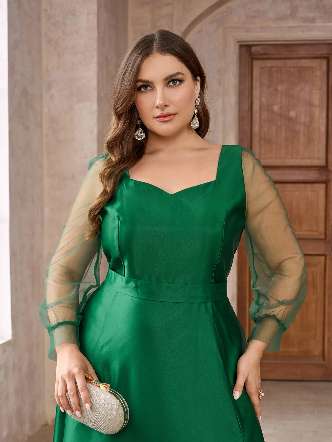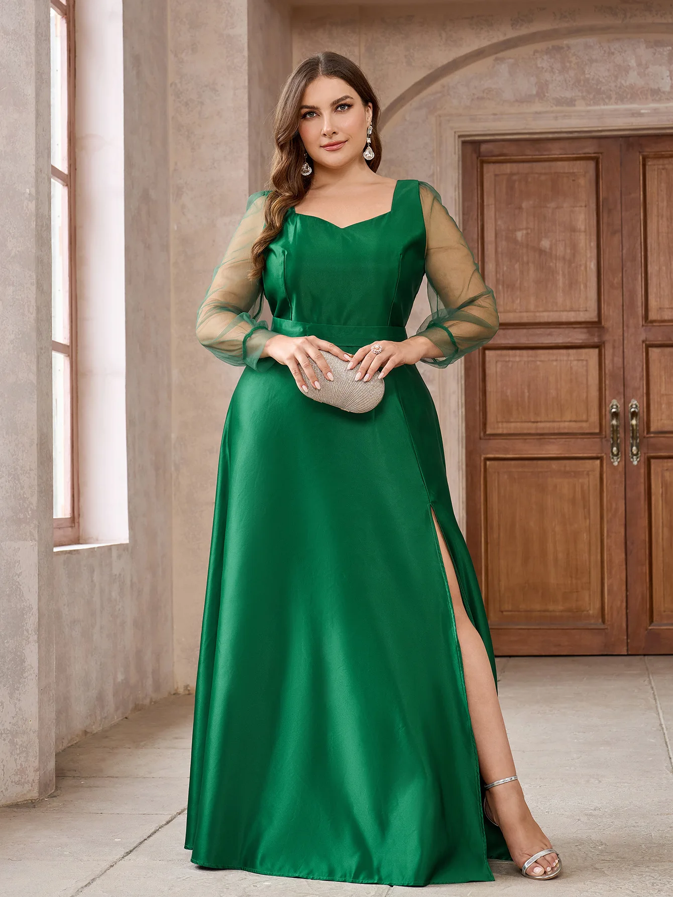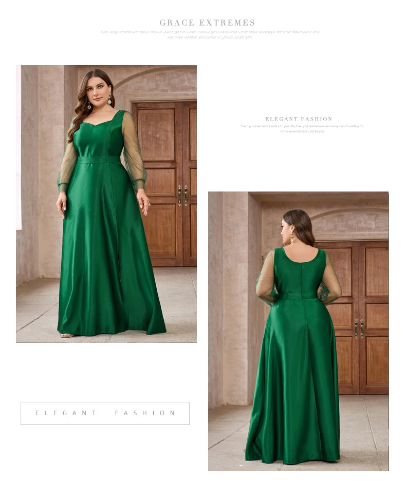 Plus Size Womens Green Satin Formal Wedding Guest Evening Party Maxi Dresses Long Sleeve Maxi Cocktail Long Dresses Vestidos