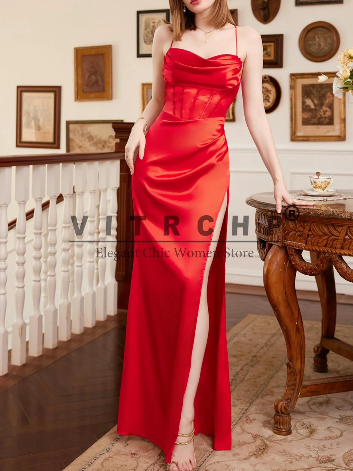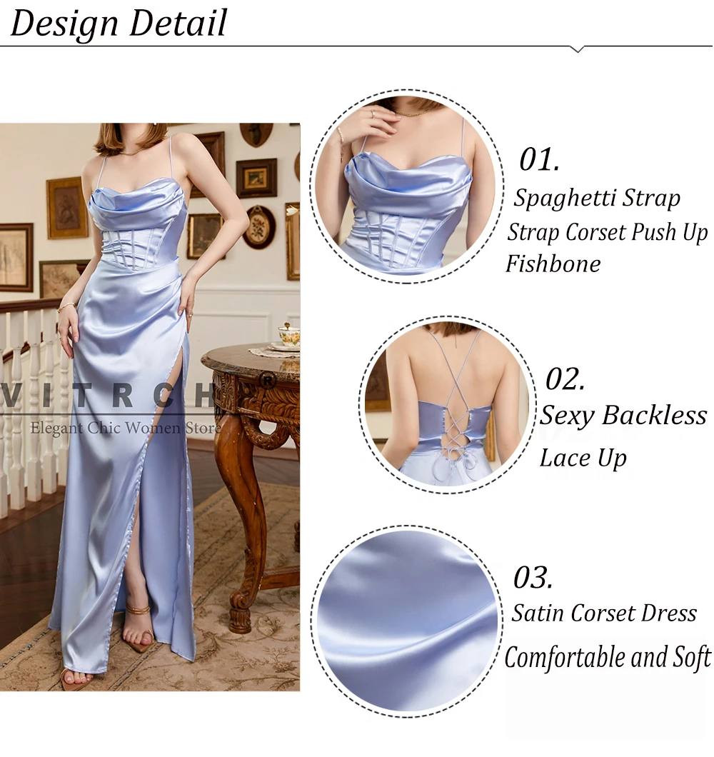 Spaghetti Strap Satin Corset Dress for Women Evening Dresses Vestidos Fishbone Push Up Elegant Women Bodycon Party Long Dress