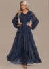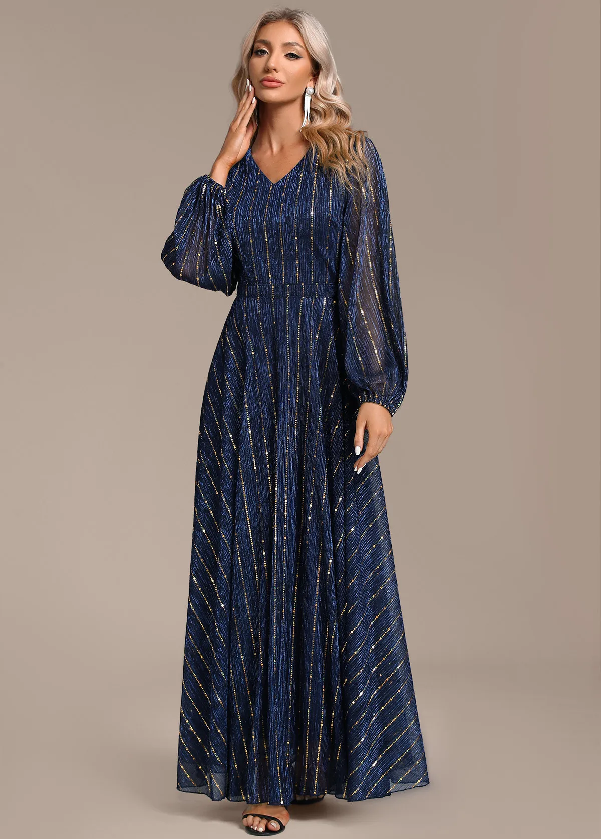 Spring and Autumn Women’s Sequined V Neck Long Sleeve Dress Fashion Retro Style Gown Party Sequined Dress Prom Vestido De Noche